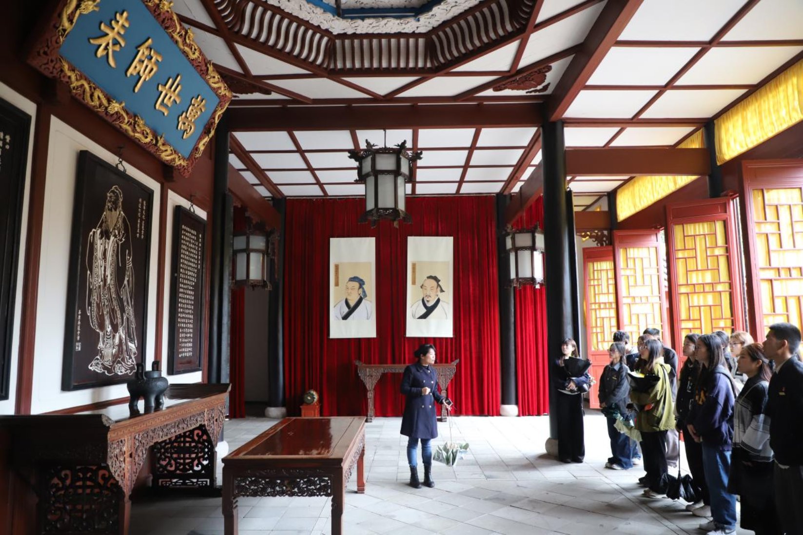 岳麓书院作为展示马克思主义基本原理同中华优秀传统文化相结合思想成果的重要窗口,持续给人们以思想的启迪。同学们一走进岳麓书院,就开始询问‘实事求是’匾额的位置,想要亲身感受党的思想路线与千年学府的深厚渊源。在讲解员的娓娓道来中,同学们仔细观看着这座具有丰富文化内涵的宝库,用心倾听了这场颇具教育意义、思想深度的党课,深切感受到了岳麓书院深厚的文化底蕴和总书记对青年一代的殷切期望。大家纷纷表示要深学笃行习近平总书记在岳麓书院的考察讲话精神,讲好红色湖南故事,发扬红色传统,传承红色基因,在传承中华优秀传统文化的过程中进一步坚定文化自信。