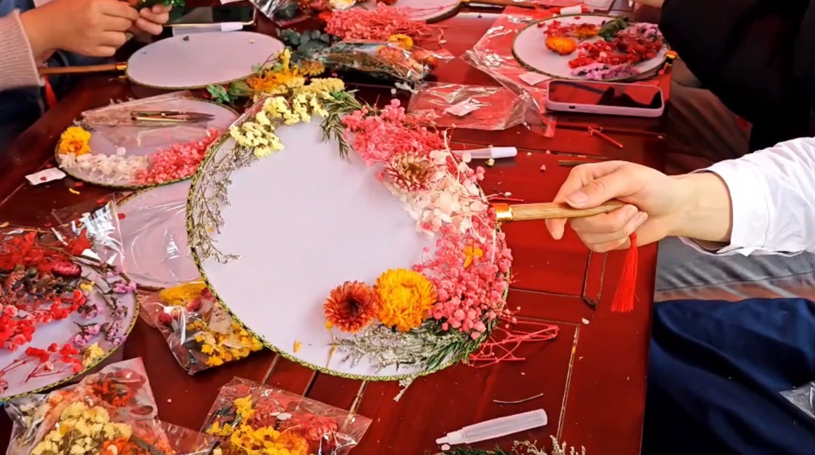 在“集市”行乐”游园会中,同学们用镜头定格身姿,映照青春倩影;在踢毽子比拼中,展现女性的灵巧与韵律之美;“晒”出心愿活动,留下暖心的话语,传递积极能量;在制作团扇、香囊的指尖艺术中,诠释自然之美。现场热闹非凡,洋溢着青春的热情。