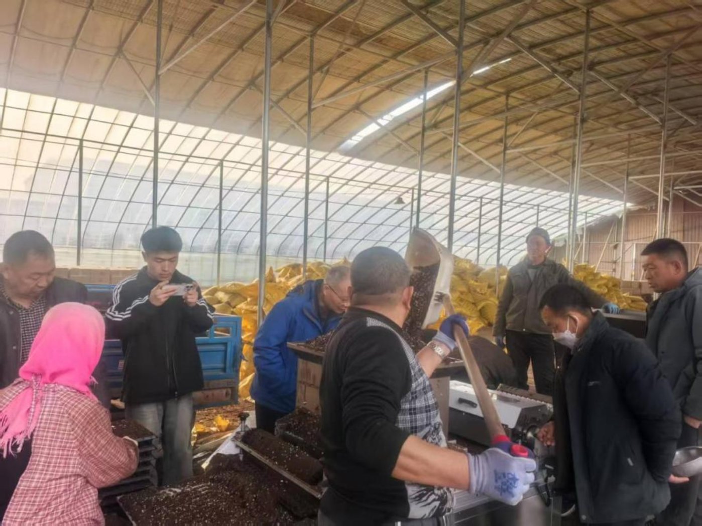 服务团队与当地农户探讨集约化育苗技术创新与标准建设