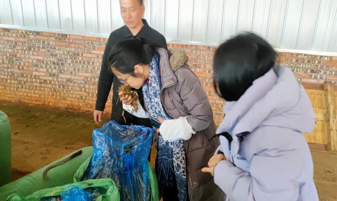 张佩华现场检查牧场饲料原料