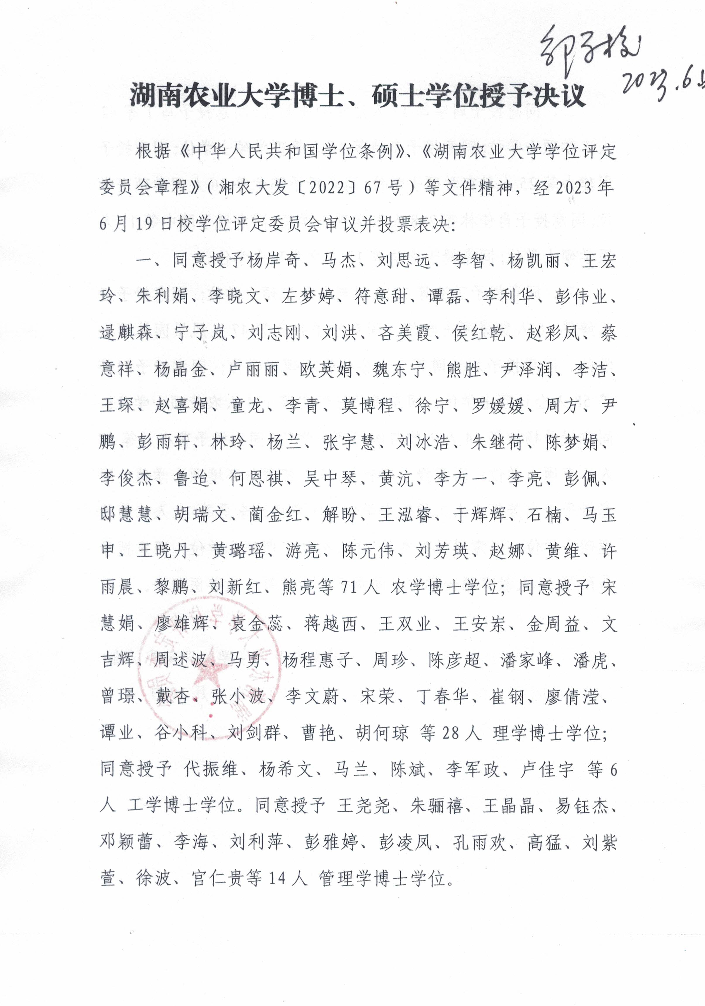 yl88858永利集团2023年6月博士硕士学位授予决议