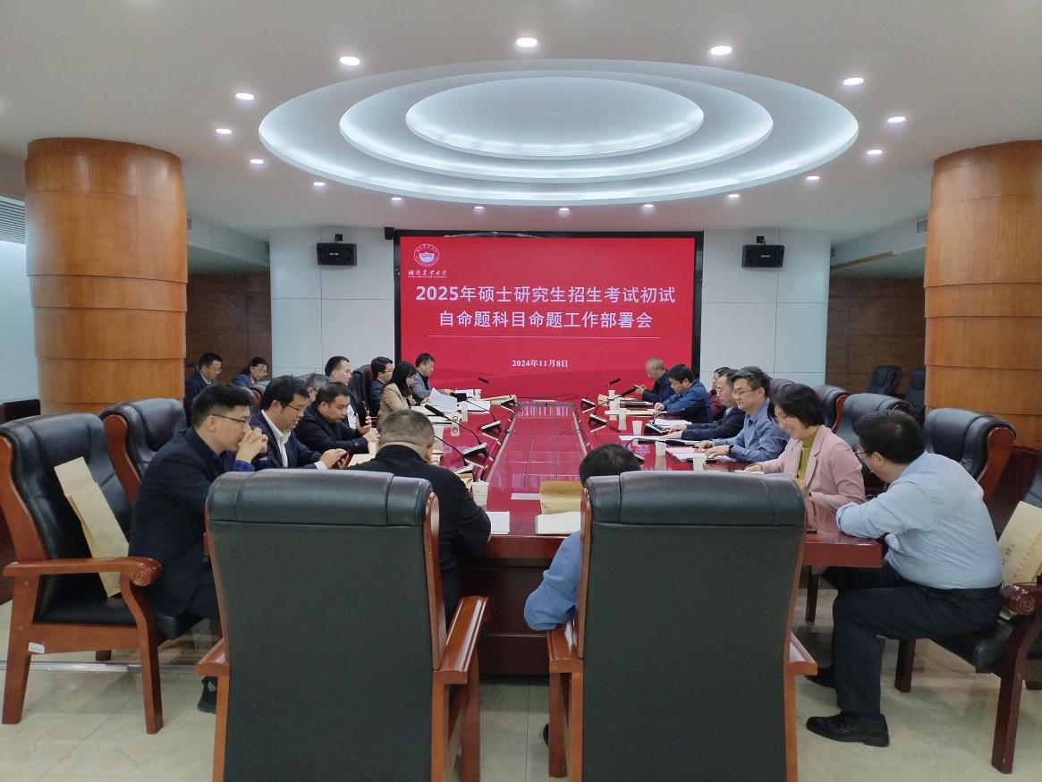 为贯彻落实教育部、湖南省关于做好2025年全国硕士研究生招生考试的指示精神,进一步加强和规范我校硕士研究生招生自命题管理工作,11月8日下午,我校在文渊馆201会议室召开2025年硕士研究生招生考试自命题工作部署会。党委委员、副校长谢方平,纪委书记凌生春出席会议,会议由谢方平主持。