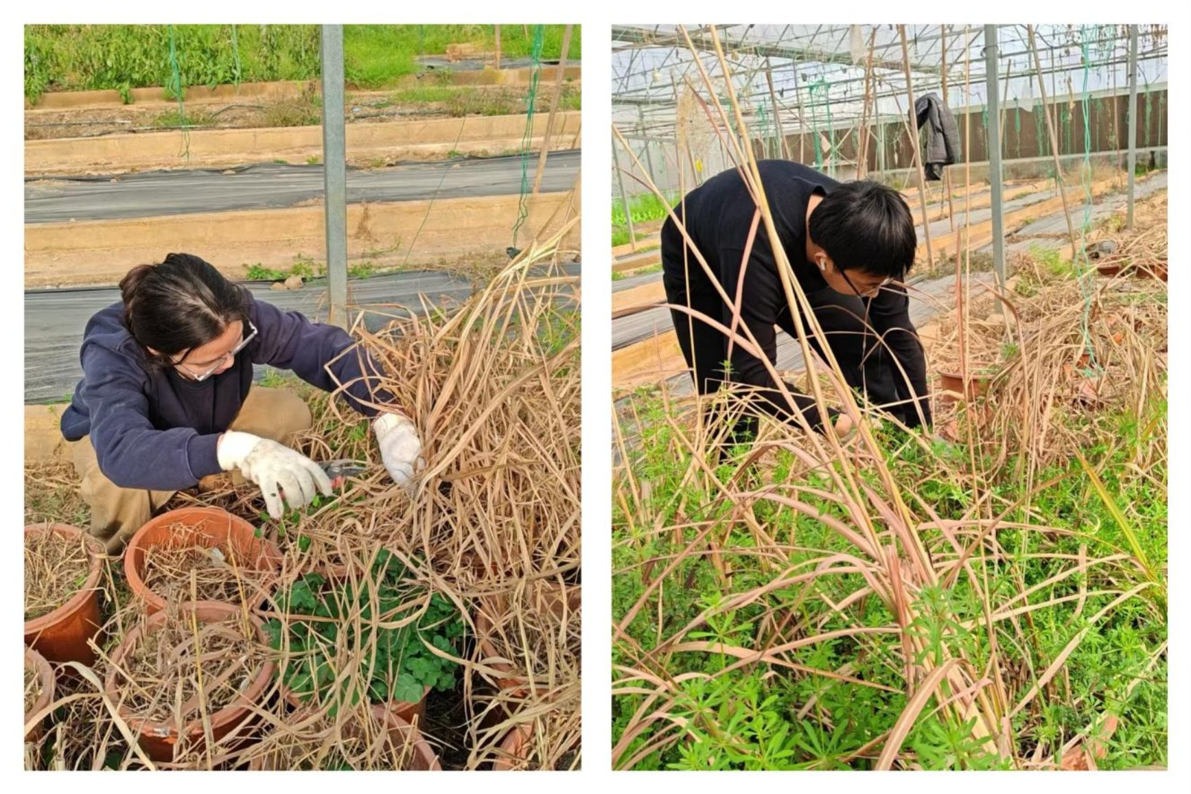寒假期间,生物科学技术学院芒属植物团队陈智勇老师带领团队研究生吕晓芬、徐李佳深入浏阳芒草基地,测产和考种,为进一步挖掘和验证芒草基因功能提供依据,为破解生物质抗降解屏障,高效进行纤维素类生物质转化利用提供理论基础。 2月26日,陈老师带领研究生郭帆、唐金平和本科生刘岚琼、曹锎月在农大老温室修剪芒草,促进芒草萌发新芽。芒草是典型的多年生高光效 C4 植物,具有生物量大、适应性强、种植成本低廉等优点,且纤维素含量、纤维素结晶度等生物质质量特性也十分优异,已成为全球最热门的生物基能源、材料与化学品制备专用作物之一。