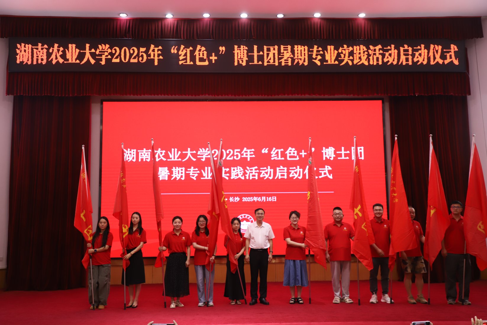 吴波为博士团授旗并作动员讲话。他希望博士团要提高站位,将个人成长与乡村振兴战略深度融合,在红色热土中感悟初心使命,在服务社会中校准人生坐标,真正将论文写在祖国大地上;要知行合一,切实发挥博士团的学科优势,通过将实践活动与“产业需求、红色基因、创新驱动”相结合,针对农村一线生产中的急需、紧迫问题开出湘农药方;要筑牢安全底线,确保实践行稳致远,在实践中加强政治意识和党性锻炼,积极传播社会主义核心价值观,严格遵守团队纪律,做好防暑、防汛、交通等应急预案,避免安全事故的发生。