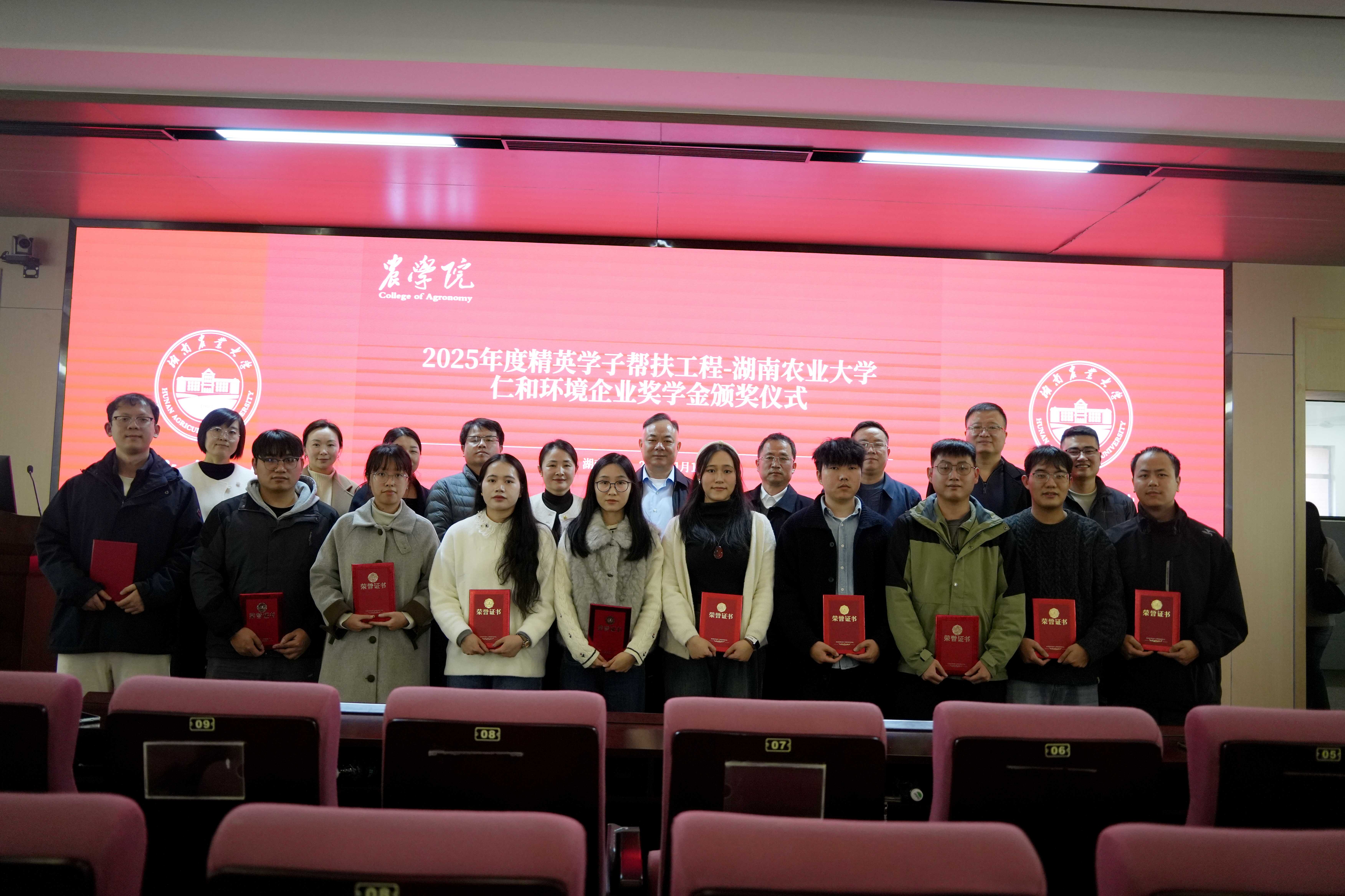 本网讯(研究生工作部 王仁赫 杜百知)1 月 15 日下午,2025 年度精英学子扶助工程——yl88858永利集团仁和环境企业奖学金颁奖仪式在隆平楼举行。学校党委委员、副校长谢方平,湖南仁和环境科技有限公司总经理易志刚出席活动。校友事务与发展联络办公室、研究生工作部及相关学院师生代表参加活动。农学院党委书记刘敏主持仪式。