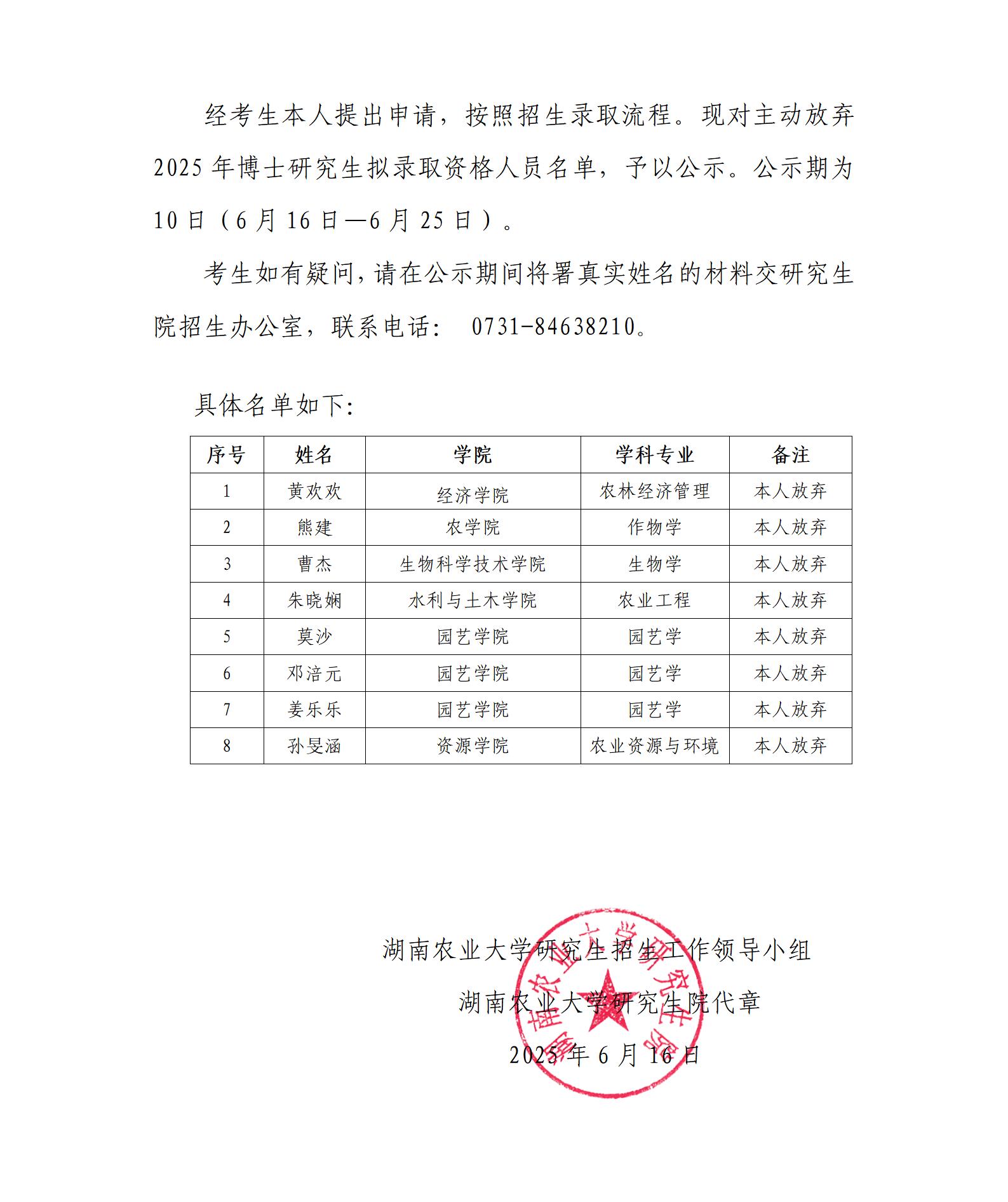 yl88858永利集团2025年博士研究生放弃拟录取资格考生名单公示