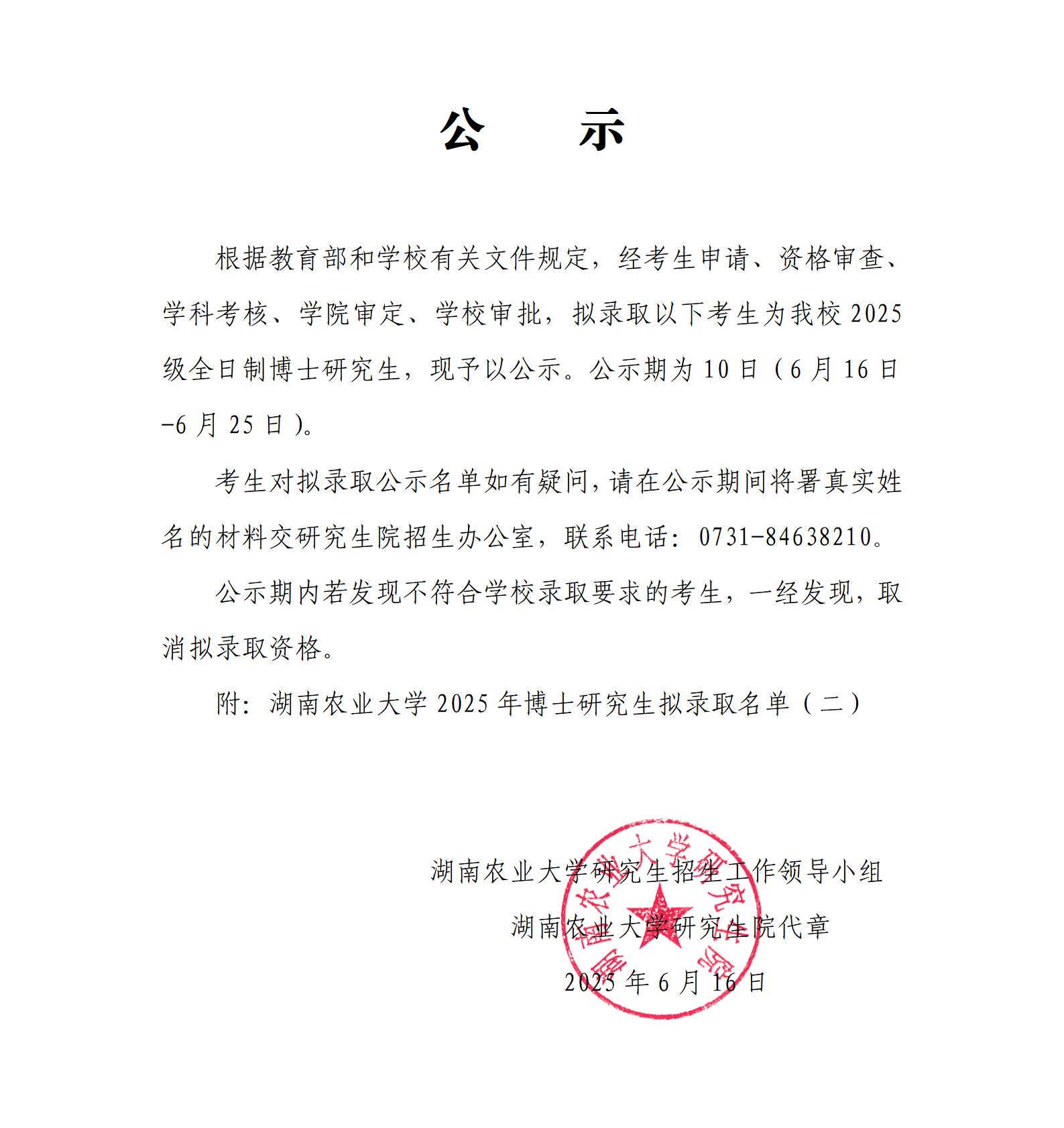 yl88858永利集团2025年博士研究生放弃拟录取名单公示(二)