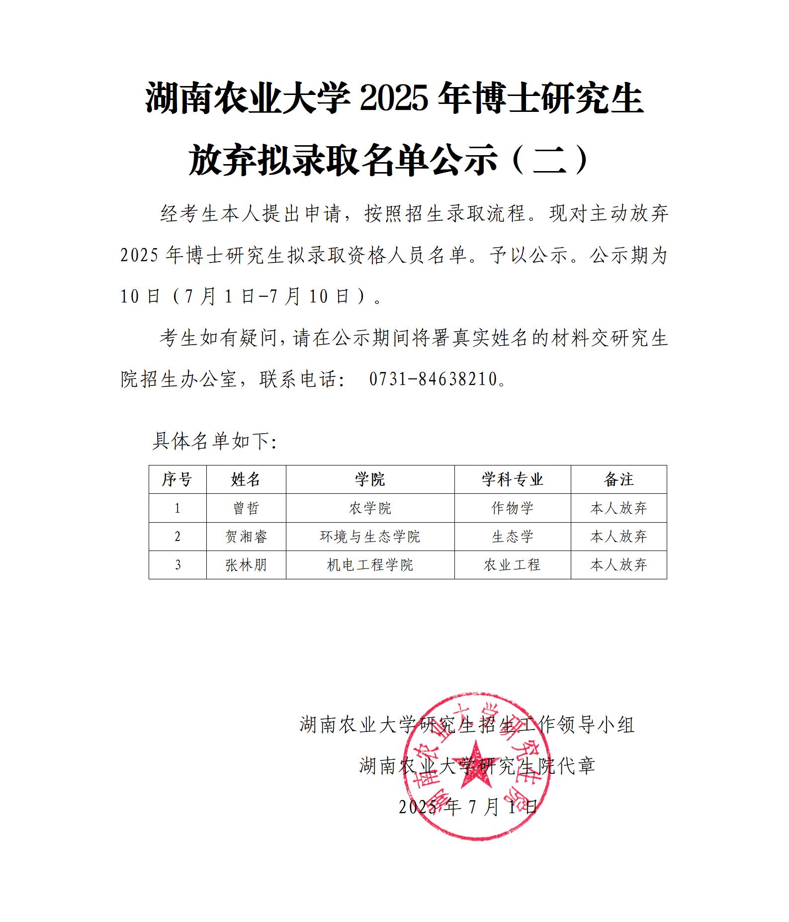 yl88858永利集团2025年博士研究生放弃拟录取名单公示(二)