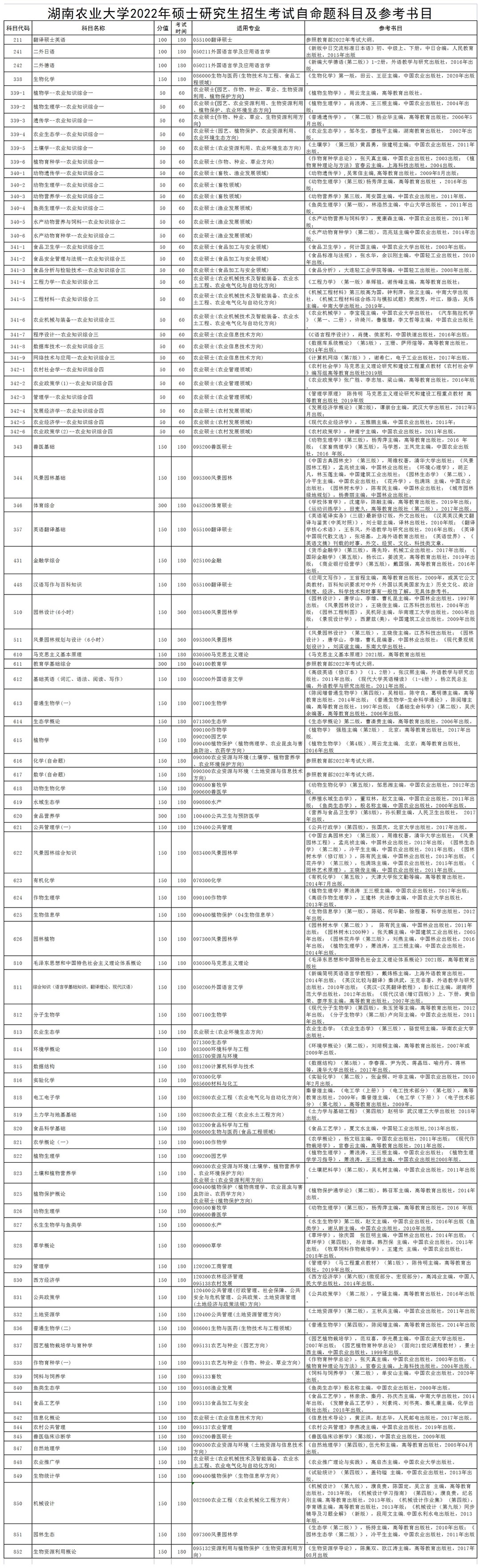 yl88858永利集团2022年硕士研究生招生考试自命题参考书目及考试大纲