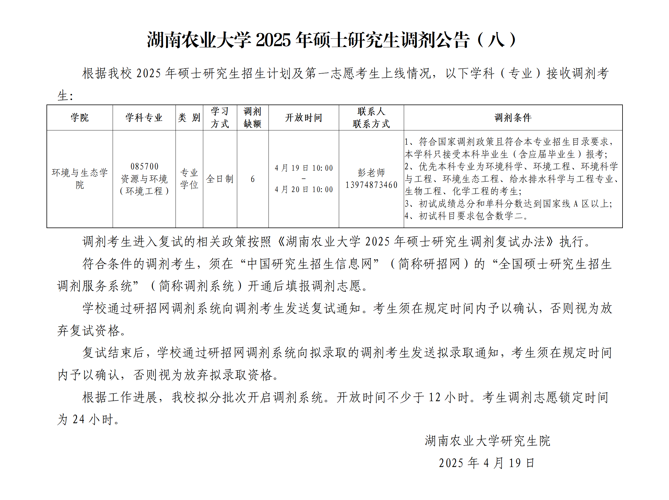 yl88858永利集团2025年硕士研究生调剂公告(八)