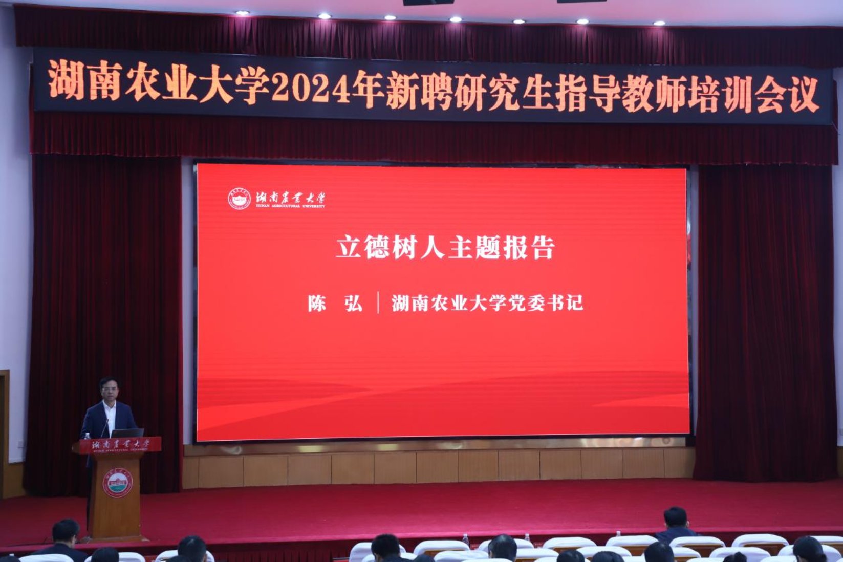 校党委书记陈弘则围绕“立德树人”根本任务,深入剖析新时代高等教育育人使命及新农科建设背景下人才培养的新要求、新路径。他强调,立德树人是教育之本,研究生导师作为科研与学术的引路人,更应在言传身教中,将品德塑造融入学术指导全程,为学生筑牢价值根基。在新农科建设浪潮里,需立足农业现代化需求,打破学科壁垒,创新培养模式,锤炼学生跨学科解决农业实际问题的能力,助力“知农爱农”新型人才脱颖而出。